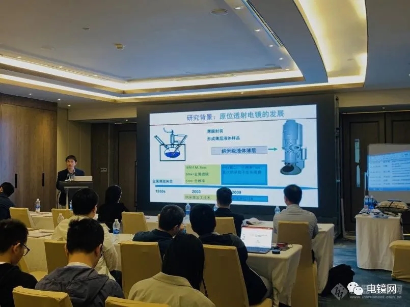 在一次报告中,廖洪钢介绍原位电镜的发展历程