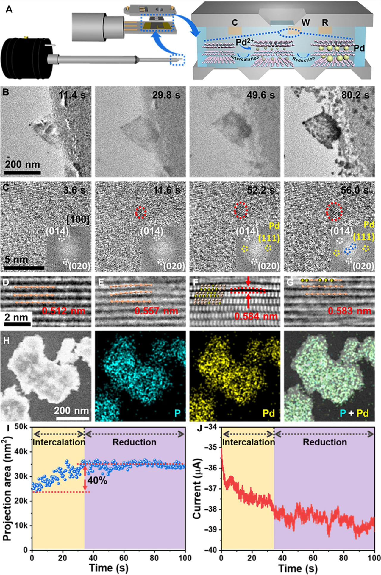 图1 纳米限域Pd-i-BP纳米片形成的EC-TEM可视化